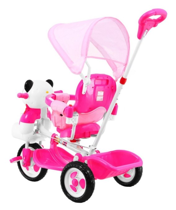 3-kołowy Rowerek dla dzieci Panda Różowy + Dźwięki + Daszek + Barierka + Podnóżek + Rączka + Schowek