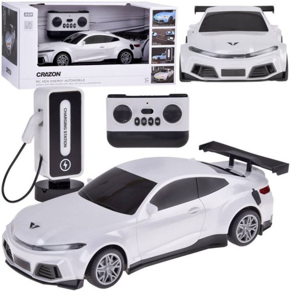 Elektryczny samochód wyścigowy o pięknym perłowym kolorze, sterowny na pilota zapewni godziny emocjonującej zabawy. Samochód idealnie odwzorowuje aktualnie najnowszą technologię samochodów elektrycznym na rynku samochodowym. Każdy mały fan motoryzacji na pewno będzie zadowolony mogąc mieć takie auto w swojej kolekcji. Auto zdalnie sterowane na pilota ze specjalną stacją ładującą jak prawdziwe pojazdy elektryczne. Magia kolorowych świateł i wielu fantastycznych funkcji które posiada ten pojazd zachwyci nie jednego dziecko.
