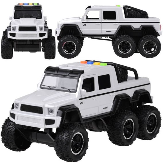 Terenowe auto do zadań specjalnych to zabawka, która zachwyci każdego młodego kierowcę. Samochód z samodzielnym napędem wystarczy położyć autko na ziemi, wycofać i puścić bez odrywania od podłoża, a autko nabiera rozpędu i jedzie do przodu! Super samochód idealny do wspaniałej zabawy dla twojego dziecka. Dzięki efektom dźwiękowym i świetlnym zapewni radość i wyśmienitą zabawę na długie godziny. Samochód wyposażony jest w aż 6 kół (siódme na bagażniku) na dużych bieżnikowanych oponach, dlatego podłoga w mieszkaniu będzie bezpieczna, a przeszkody nie będą miały znaczenia.