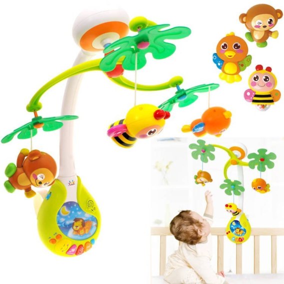 Urocza karuzela z pozytywką, na której zwieszone są zwierzaki, świetnie będzie pasować do każdego łóżeczka. Karuzela jest rewelacyjnym sposobem na zainteresowanie maluszka, który bryka w łóżeczku i czasem mu się nudzi. Melodie grane przez pozytywkę są bardzo łagodne i spokojne. Konstrukcja karuzeli jest plastikowa. Zwierzątka są w różnych kolorach. Pozytywka posiada blokadę, dzięki której można zadecydować czy gra melodia czy nie. Karuzela z zwierzątkami wspaniale uspokaja malucha, pomaga zasypiać a co najważniejsze wspomaga rozwój dziecka. Zasypianie może być trudne, szczególnie dla ciekawego wszystkiego malucha jednak kiedy nad głową pojawiają się słodkie zwierzątka, a w tle słychać kołysankę, zasypianie staje się prawdziwa przyjemnością.