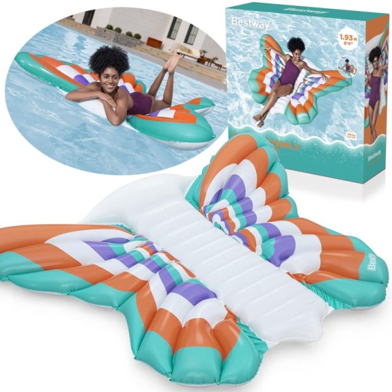 Efektowny leżak wodny w kształcie motyla marki Bestway to doskonały wybór dla osób, które chcą połączyć komfort wypoczynku z oryginalnym designem. Duża powierzchnia oraz stabilna konstrukcja zapewniają wygodne unoszenie się na wodzie, a atrakcyjna forma przyciąga wzrok i wyróżnia się na basenie, jeziorze czy nad morzem.
