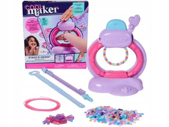 Cool Maker. Studio Bransoletek to kreatywny zestaw, który pozwala dzieciom w łatwy sposób tworzyć modne bransoletki Heishi. W komplecie znajdziesz wszystko, czego potrzeba, aby zrobić 15 bransoletek: ponad 1200 kolorowych koralików Heishi, 10 specjalnych koralików, długopis do nawlekania i inne akcesoria. Dzieci mogą łatwo dopasować bransoletkę do swojego nadgarstka, korzystając z miarki i symboli na długopisie. Nawlekaj koraliki długopisem, układaj je w wybrany wzór, a następnie umieść je na sznurku w studio. Wsuń nadgarstek i naciśnij przycisk bransoletka sama się zapięła! Ten zestaw pobudza wyobraźnię i pozwala tworzyć unikalne kompozycje bransoletek, korzystając z własnych pomysłów lub inspirując się dołączonym przewodnikiem. Po zakończeniu pracy bransoletki można nakładać na siebie, nosić i wymieniać z przyjaciółkami. To świetna zabawa na urodziny, nocowania, deszczowe dni, powrót do szkoły lub codzienną kreatywną aktywność. Zestawy Cool Maker doskonale uzupełniają inne zestawy kreatywne. Cool Maker. Studio bransoletek nawlekaj, układaj i zrób swoją wymarzoną bransoletkę w kilka chwil!