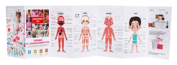- książeczka w języku polskim i angielskim ucząca dzieci budowy ciała człowieka (narządy, kości, mięsnie, ciało),