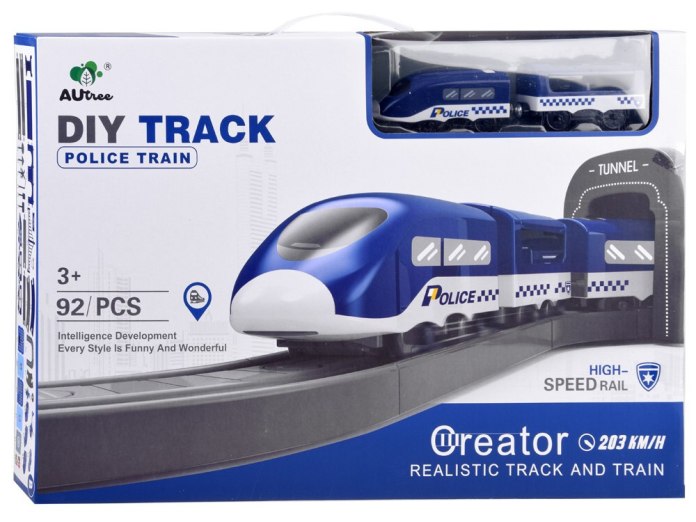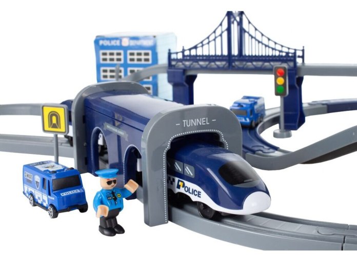 Duża kolejka elektryczna POLICJA to aż 92 elementy pełne akcji i zabawy 🚓 .Zestaw zawiera tor, lokomotywę, wagony oraz elementy policyjnej scenerii, tworząc realistyczny świat służb mundurowych. Idealna dla dzieci, które kochają pojazdy i dynamiczną zabawę – zapewnia godziny kreatywnej rozrywki!