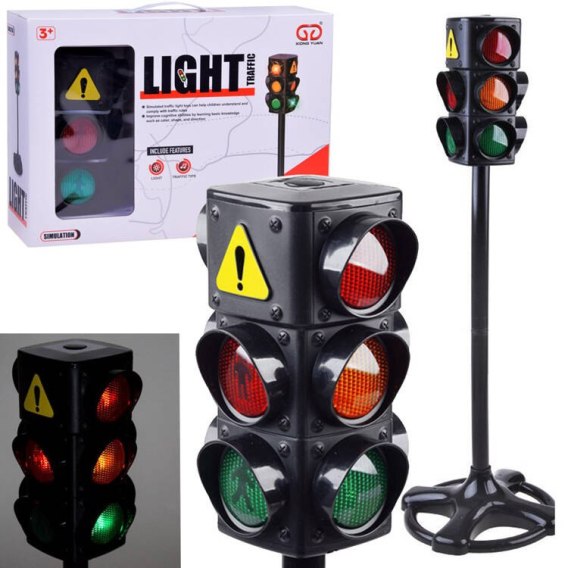Znak drogowy sygnalizacja świetlna z 3 światłami w kolorze czerwonym, pomarańczowym i zielonym oraz efektem dźwiękowym będzie niezbędnym atrybutem do poznania zasad drogowych, nauki poruszania się na drodze, przejściu dla pieszych.
