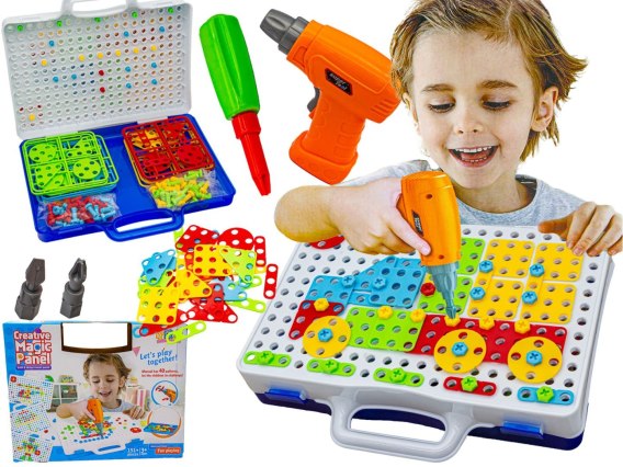 Edukacyjna Układanka,Puzzle,Klocki Kreatywna Mozaika, Wkrętarka 151 El Zestaw Konstrukcyjny
