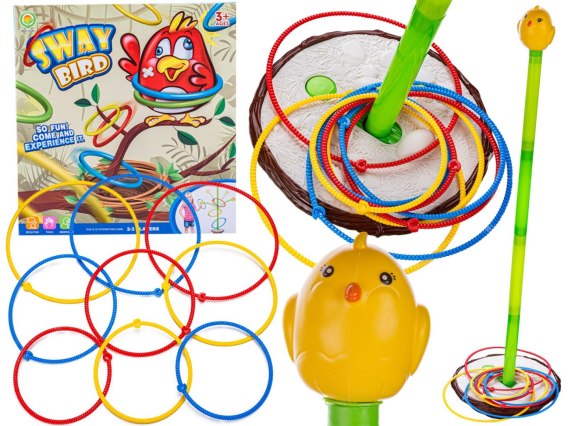 Zadaniem graczy jest wrzucenie wszystkich obręczy na pałąk z ptaszkiem,