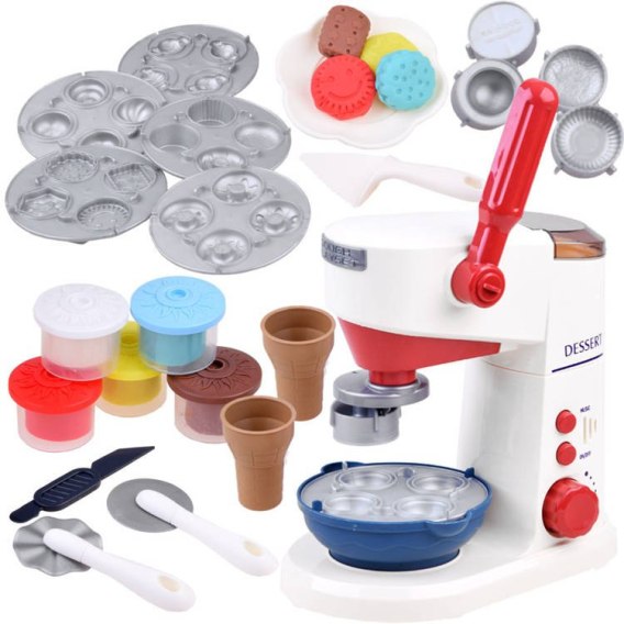 Interaktywna cukiernia to propozycja dla każdego małego plastyka cukiernika. Fantastyczny zestaw do tworzenia najcudowniejszych deserów, dekoracji cukierniczych dla małego wirtuoza cukiernictwa. Maszyna zapewnia tworzenie najróżniejszych dekoracji z masy plastycznej, deserów, ciasteczek.