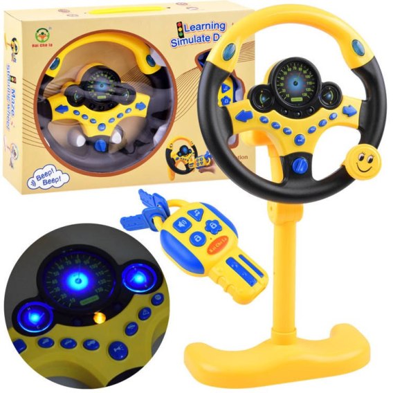Interaktywna Kierownica na stojaku + pilot kluczyki dźwięki ZA3965