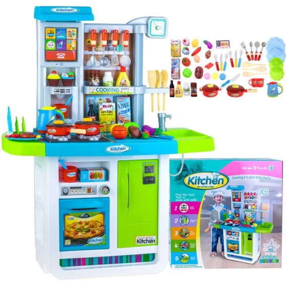 Prawie każde małe dziecko uwielbia pomagać w przygotowywaniu domowych posiłków, a jak nie lubi to zapewne polubi dzięki temu rewelacyjnemu zestawowi. Bezpieczna kuchnia do zabaw w dom, restauracje, bar- to właśnie propozycja dla Państwa pociech. Świetny pomysł na prezent dla małych przyszłych kucharzy, pomocników kucharzy, restauratorów itp. Zabawa w gotowanie rozwija wyobraźnię dziecka, uczy poznawania zasad gotowania, uczy obowiązków domowych. Czysta przyjemność "zjeść" pyszny posiłek przygotowany przez własne dziecko. Mały kucharz będzie mógł bez problemu teraz urządzić przyjęcie urodzinowe dla swoich lalek i misiów. Jeszcze większą frajdą jest to że podczas zabawy kuchnia posiada lodówkę do przechowywania żywności, piekarnik, zlewozmywak i wszystko co jest niezbędne w kuchni.