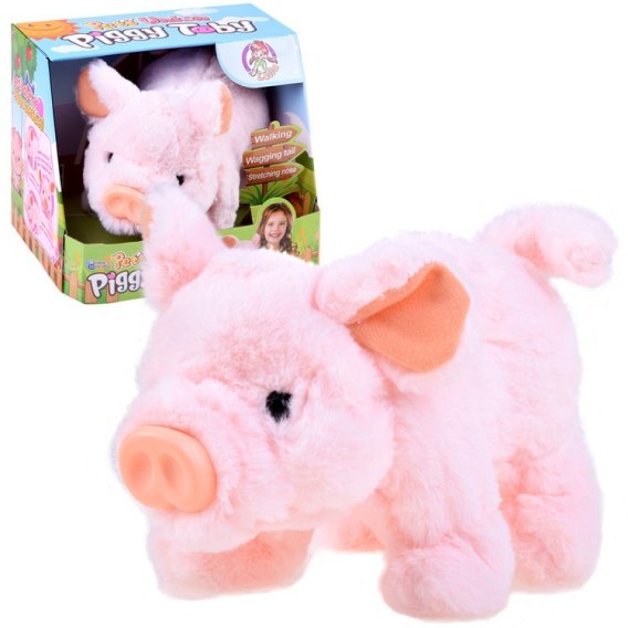 Urocza, pluszowa interaktywna świnka z chęcią zaprzyjaźni się z twoim dzieckiem! Zabawka wykonana jest z przyjemnego pluszu, dzięki czemu aż chce się ją głaskać. Po włączeniu świnka zabawka chodzi do przodu, śmiesznie marszczy pyszczek, rusza ogonkiem i oczywiście chrumka. Jest to bardzo pocieszna zabawka, zapewne przypadnie do gustu każdemu.
