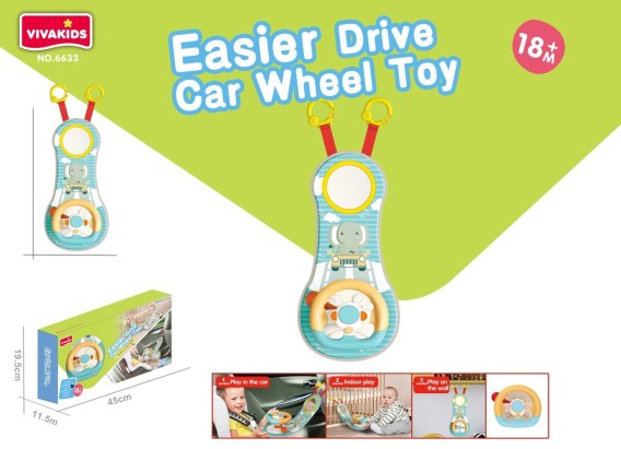 Interaktywny zestaw dla dzieci już od 18 miesiąca życia umili dziecku czas podczas podróży. Twój maluch poczuje się jak prawdziwy kierowca i będzie mógł naśladować ruchy rodzica podczas jazdy. Zestaw przeznaczony jest tylko dla dzieci siedzących przodem do kierunku jazdy, nie należy używać w przypadku niemowląt skierowanych tyłem do kierunku jazdy. Zestaw łatwo przyczepia się do zagłówka siedzenia. Zabawka stymuluje rozwój zmysłów dziecka poprzez dźwięki i światła. Zabawka zasilana jest bateriami typu 3 x AA 1,5V (brak w zestawie).