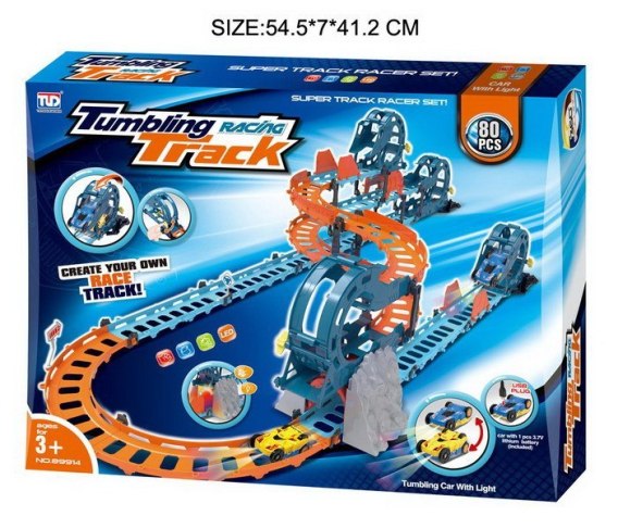 Interaktywny tor wyścigowy z tunelem + dwustronne autko dla dzieci 3+ Dźwięki Światła 80 el.