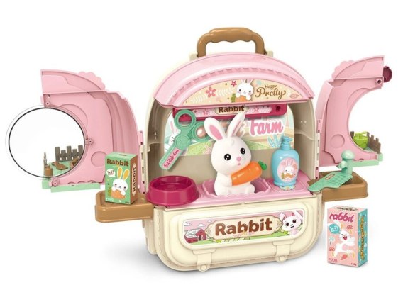 Królik w Plecaku Zabawka 3w1 Mini Farma Ogródek Plecak Domek Dla Lalek