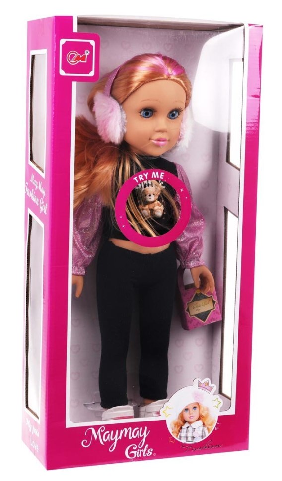 Śliczna, duża lalka, dla dziecka od 3-go roku życia. Lalka jest perfekcyjnie wykończona, z dbałością o każdy szczegół i w pełni bezpieczna dla dziecka. Ubrana jest w bluzkę, spodnie i buty. Ma też torebkę i nauszniki zimowe na uszy. Ubranka możemy zdejmować i przebierać lalkę w inne. Ruchome nóżki i rączki, ułatwiają przebieranie. Na brzuszku lalki znajduje się przycisk, po naciśnięciu, na który usłyszymy wesołą piosenkę. Lala zasilana jest bateriami typu 3 x AG13 (w zestawie).