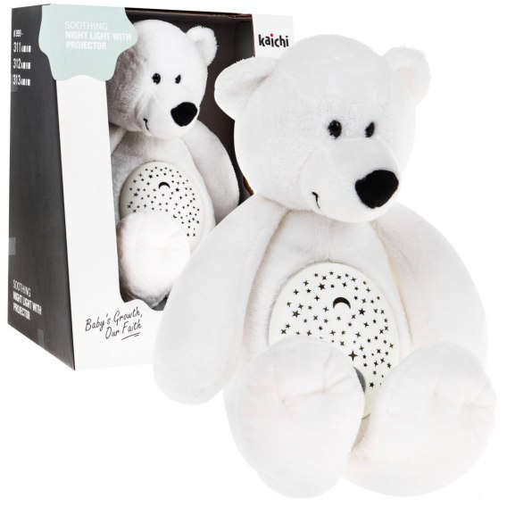 Mięciutki i miły w dotyku interaktywny miś z projektorem w brzuszku, to propozycja dla dzieci już od szóstego miesiąca życia. Zabawka została wykonana z materiału bezpiecznego dla niemowląt. Miś spełnia funkcję przytulanki, lampki nocnej oraz pozytywki. Zabawka pozytywnie wpływa na zmysły dziecka, zmysł wzroku, słuchu i dotyku. Dziecko czuje się bezpiecznie, wycisza się i łatwiej zasypia.Projektor znajdujący się w brzuszku misia wyświetla na suficie i ścianach gwiaździste niebo w kolorze czerwonym, niebieski, zielonym czy fioletowym. Zabawkę łatwo można utrzymać w czystości. Po wyciągnięciu wewnętrznego mechanizmu, można ją wyprać w pralce. Mechanizm zasilany jest bateriami typu 3 x AA (baterii brak w zestawie).