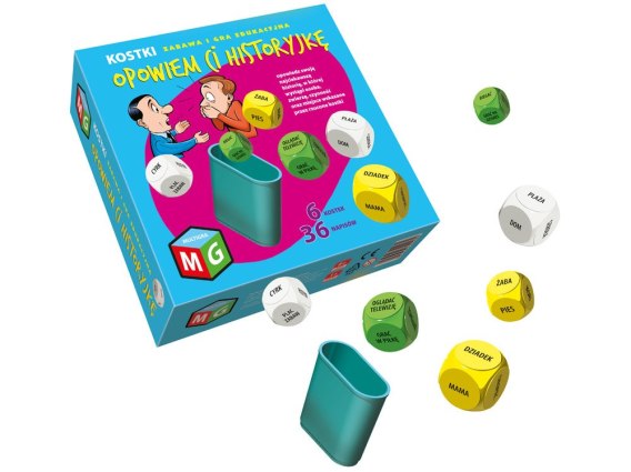 Gra, zabawka edukacyjna, opowiem ci historyjkę, kości do gry, kubek