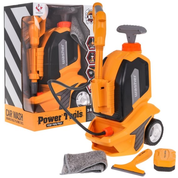 Myjka ciśnieniowa z funkcją wody to propozycja dla dzieci od 3-go roku życia. Myjka jest łatwa w obsłudze, należy uzupełnić zbiorniczek znajdujący się na górze zabawki wodą, a następnie poruszać rączką w górę i w dół. Na pistolecie wkładamy kluczyk w jego górną część oraz wciskamy przycisk na rączce, by zaczęła się z niego wydobywać woda. Zabawka nie wymaga użycia baterii. Do zestawu dołączono również ściągaczkę do wody, gąbkę oraz ściereczkę. Cały zestaw wykonany został z najlepszej jakości materiałów, nie posiada ostrych elementów i jest bezpieczny dla dzieci.