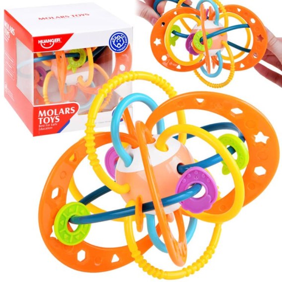 Dzięki giętkim elementom, dziecko bez problemu będzie mogło trzymać w rączkach zabawkę. Gładka i miękka powierzchnia elastycznych wywijasów sprawdzi się świetnie podczas masażu dziąseł dziecka. Kolorowe elementy umieszczone na giętkich zawijasach z łatwością się przesuwają po zabawce.