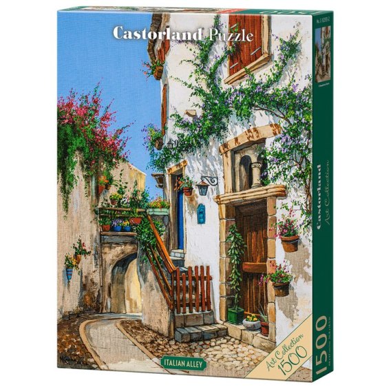 Przenieś się na malownicze, słoneczne uliczki Włoch z puzzlami Italian Alley z kolekcji Art Collection od marki Castorland. Ten wyjątkowy zestaw składa się z 1500 precyzyjnie wykonanych elementów, które po ułożeniu tworzą obraz o wymiarach 68 × 47 cm, przedstawiający urokliwą włoską alejkę pełną koloru, światła i śródziemnomorskiego klimatu.