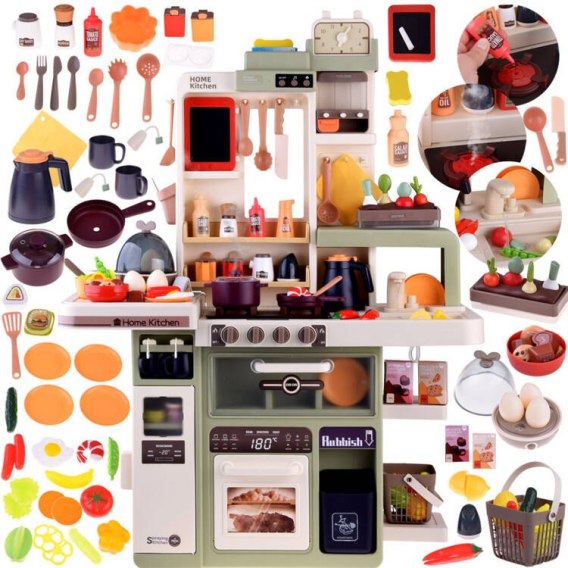 Realistyczna kuchnia dla dzieci to propozycja dla każdego dziecka. Kuchnia bardzo dobrze wyposażona, posiada mnóstwo akcesoriów do gotowania, przyrządzania, efekty dźwiękowe, parowe, lejąca woda, no wszystko co w kuchni się może wydarzyć. Kuchnia w całości wykonana jest z plastiku w bardzo fajnej stonowanej kolorystyce, zapewne będzie pasować do każdego kącika kuchennego.