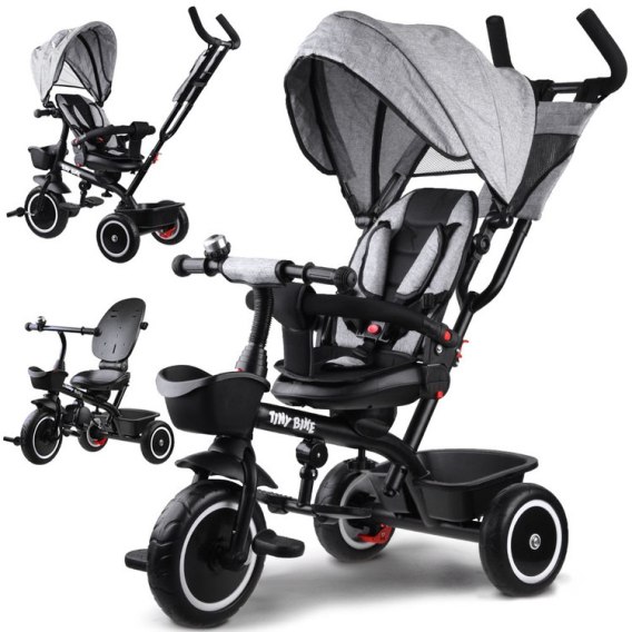 Trójkołowy rowerek szary dla dziecka Tiny Bike. Spacerówka, pchacz, rowerek trójkołowy.
