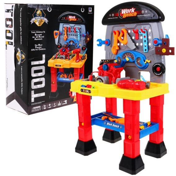 Warsztat z silnikiem dla dzieci 3+ Dźwięki Światła + Narzędzia + Akcesoria + Stolik majsterkowicza